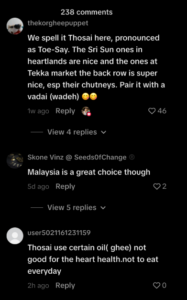 Netizens have been reacting to the video in a variety of ways. Some jokingly said that in Singapore, dosa is called “thosai,” and it is important to know its correct pronunciation. Others suggested popular places, especially in the Anjappar area. Some also suggested eating chutney with the food to make the experience even better.