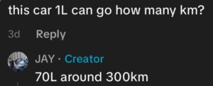 One viewer asked whether the tank had been empty before the refill. The creator replied that the car still had about a quarter tank left.