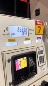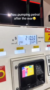Posted four days ago, the clip shows the creator filling up his car while two to three friends stand nearby watching the numbers on the pump rise. The video’s on-screen caption reads: