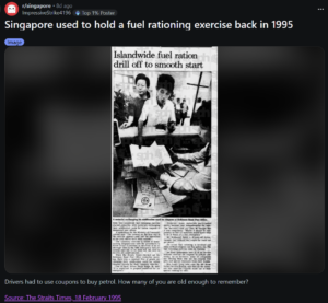 Recently, a reddit post has highlighted a fuel rationing exercise conducted in Singapore in 1995.