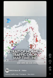 Normally, about 20 percent of global oil supplies pass through this strait. However, now many ships are losing their way in a thick fog of false signals. As a result, international energy transport has also slowed down.