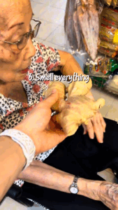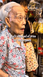 The video opens with the words, “Things my 87 y/o grandma do at the wet market.”
