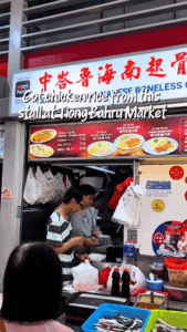 “Queue up 30 minutes to get meat only from this stall,” reads one caption in the video.