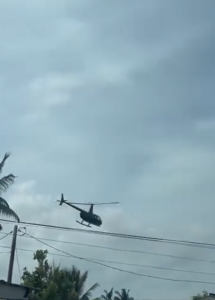 The helicopter was seen to have been taking off an empty land between houses by witnesses. No official landing pad was in sight. A few citizens went out to see the plane take its slow steps upwards and get away. The helicopter pilot appeared to have been in full control of the copter without hitting any surrounding buildings and trees.
