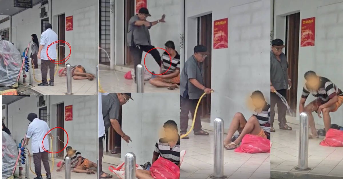 The incident of a homeless man being thrown into the street by a security guard in front of an Ambank branch in Taman Maluri, Malaysia, has sparked a backlash on social media. The 36-second video on Reddit shows a security guard waking up the man who was sleeping on the sidewalk by spraying him with water from a hose.