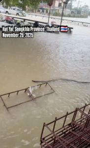 Hat Yai, Songkhla and surrounding areas have been almost paralyzed by several days of continuous rain. Houses, markets, roads—everything is now under water. Many people are spending their days taking shelter on the second floors of their houses.