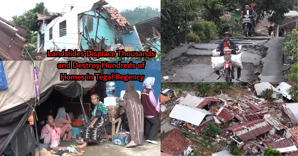 A number of landslides triggered by continuous rain across Tegal Regency in Central Java have forced thousands of residents to flee and caused extensive damage to homes and infrastructure.