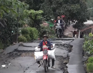 Footage captured on Friday shows widespread destruction, with cracked streets and collapsed houses at Padasari Village, while villagers had to evacuate to nearby shelters with their belongings.