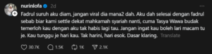 Nurin later on revealed that she had removed some posts on the request of her husband. But that was not the end of the case. The couple later took the issue to the Syariah Court.
