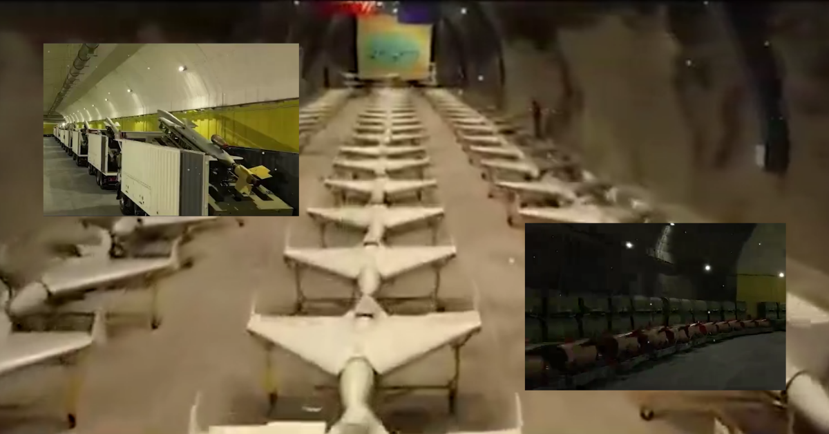 The video, published on March 2 by Iran’s Islamic Revolutionary Guard Corps (IRGC) through state media, shows a long tunnel lined with military equipment. Rows of triangular-shaped drones resembling Iran’s domestically produced Shahed-136 drones appear positioned along the passageway.