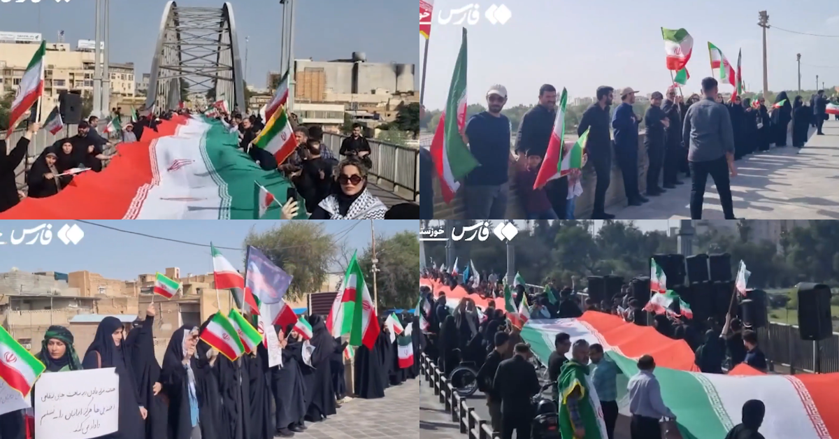 Iranians formed human chains across bridges in Khuzestan Province on Tuesday, in a show of solidarity following threats by Donald Trump to target the country’s infrastructure.