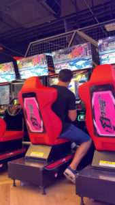 The next stop was a mall arcade, which he showed was nearly empty, before a short round on a racing game followed, which he described as his favourite.