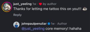 John replied to her comment calling it a “core memory.”