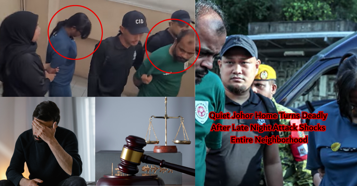 A quiet neighbourhood in Johor Bahru was shaken after a man was allegedly attacked inside his own home, with his wife and another individual now facing attempted murder charges.