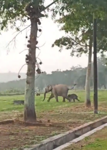The video of the event quickly spread online, showing the strong bond between the mother and her calf. Many were surprised to see such large wild animals so close to a developed area during the daytime.