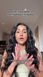 In her explanation, the woman said her actions were prompted by what she described as a long-running pattern of harassment allegedly linked to the occupant of the flat.