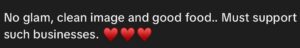 One commenter wrote, “No glam, clean image and good food.. Must support such businesses.”