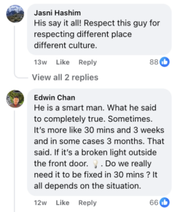 As a result, a task that takes 30 minutes to complete in Singapore can take days in Malaysia. This difference has led to a tendency to misunderstand each other’s cultures.