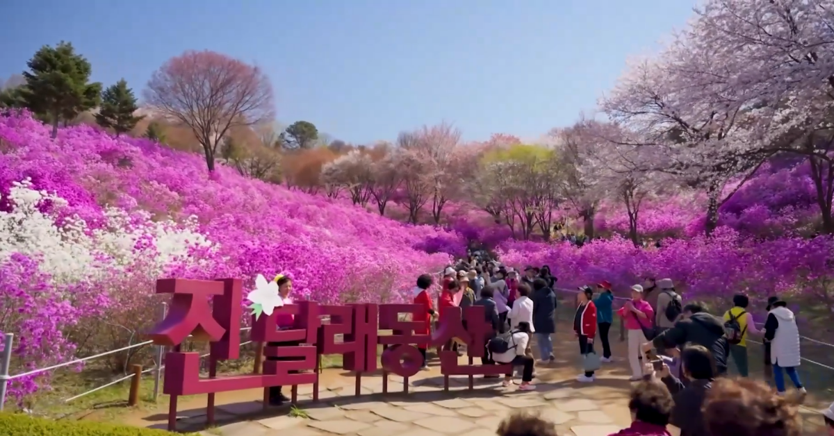 Located just outside Seoul, the festival has attracted large crowds eager to stroll through the blooming azaleas, snapping photos and celebrating the season’s peak.