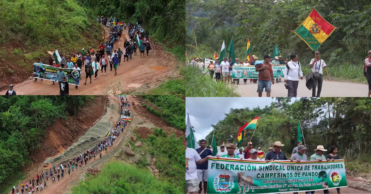Thousands of workers and indigenous people from Bolivia’s Pando department were seen marching towards La Paz for the 16th day, demanding the repeal of Law 1720, which they say threatens access to land in their communities.