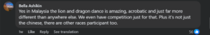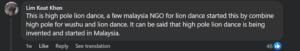 Commenters also mentioned that Malaysia’s lion dance stands out due to its incorporation of acrobatics on poles.