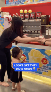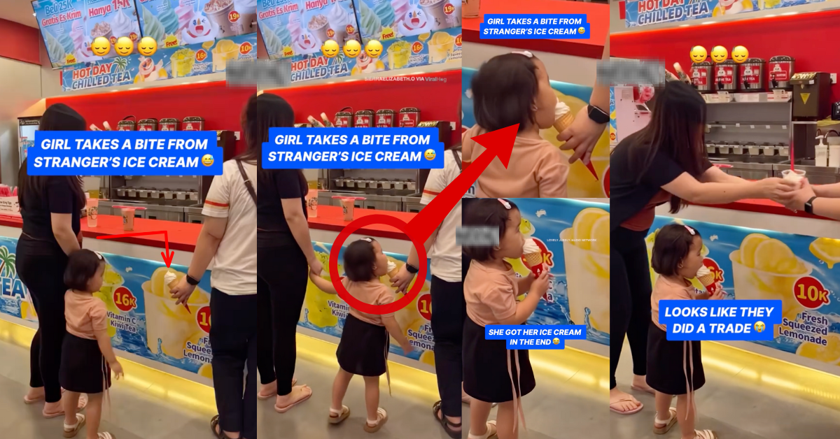 A heartwarming scene has been captured in a video that has gone viral on social media. The original video by @/sierraelizabeth_ong on TikTok showed a mother and her little girl in standing in front of an ice cream counter waiting for their order. A stranger was standing next to her with ice cream in her hand. By the currency and writing on the menu boards, they appear to be in Indonesia.