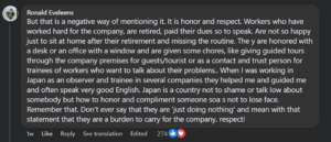According to a post, this practice is a way for companies to show loyalty and respect toward employees who have given many years of service. It is not only about work but also about culture and tradition in Japanese society.