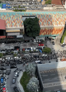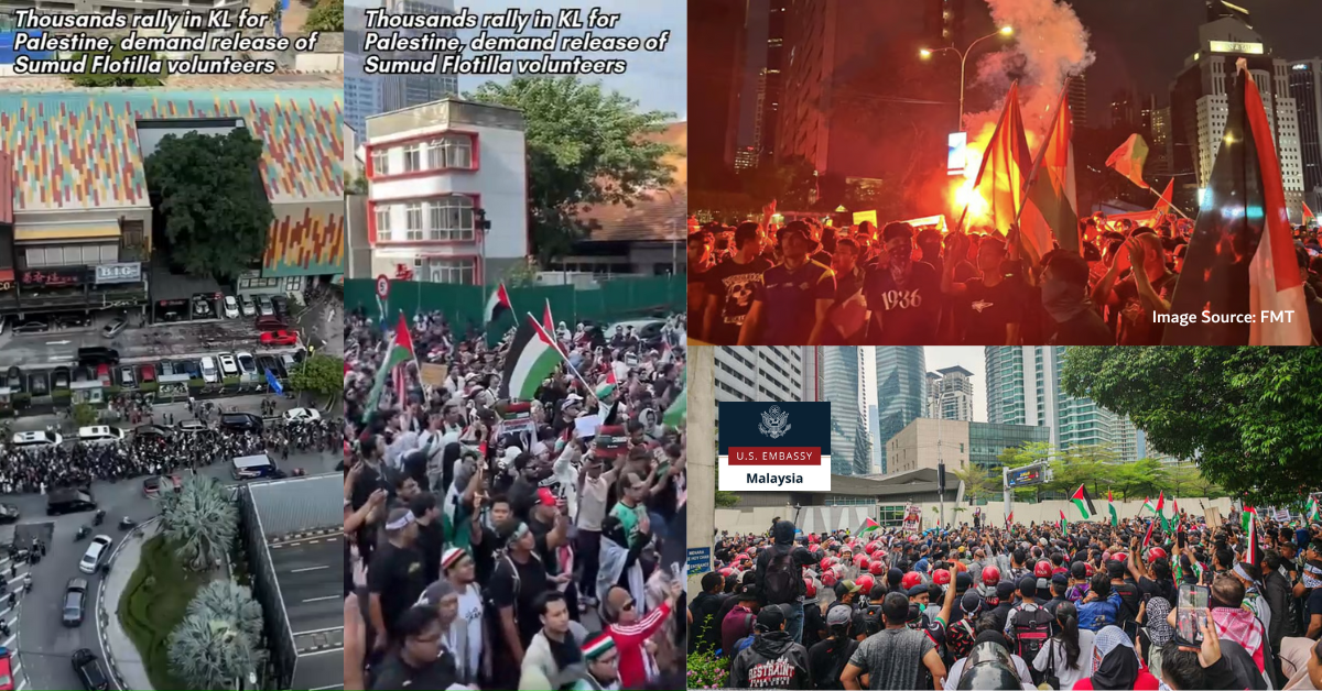 A wave of pro-Palestine demonstrations has swept through Malaysia’s capital since Thursday, as crowds gathered outside the United States Embassy along Jalan Tun Razak to protest Israel’s interception of the Global Sumud Flotilla (GSF) and the detention of Malaysians onboard.