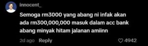 Dicky later visited the mechanic, who is known online as “Minyak hitam jalanan.” During the visit, he handed over RM3,000, as he had promised earlier. He planned to keep the remaining RM2,000 for his children’s school fees in his hometown.