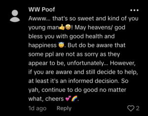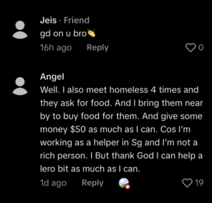 After a video was posted by the guy in TikTok, netizens’ reactions were mixed. Some said that they had also encountered homeless people more than once and bought them food.
