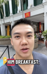 Bugis, a busy area of Singapore. The morning started like every day with a crowd of people and the hustle and bustle of shops. At that time, a young man met a homeless man. He calmly requested a meal. The young man bought him breakfast at McDonald’s.