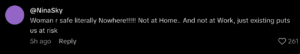 Others comment that women are not safe anywhere today; at home or at work—they are at risk simply for their very existence. Many have called for stricter laws and safety measures against violence against women in the workplace.