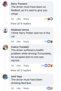 The online reactions were mixed with surprise and light humor. Some joked that the car had taken wings after drinking a strong energy drink. Others said that even though the accident occurred due to health reasons, a major danger was fortunately avoided. Others expressed concern that such high-speed driving could have caused a bigger disaster.