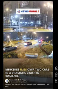 A heartbreaking accident occurred in the city of Oradea, Romania, on 6 December. CCTV footage shows a speeding Mercedes car losing control at a roundabout and flying into the air over two other cars.