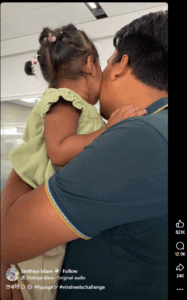 The child in the video and her mother were visiting her father, who is a migrant worker in Saudi Arabia. The video captured one of their last moments before the child and mother would return to Bangladesh.