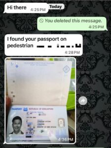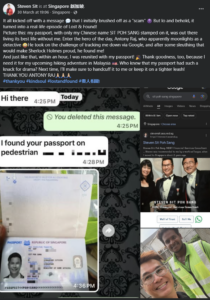 On 30 March, entrepreneur Steven Sit took to Facebook to recount the incident. He admitted that his first instinct was to ignore the message. At first glance, it looked suspicious. The sender had texted him saying they had found his passport and even attached a photo as proof.