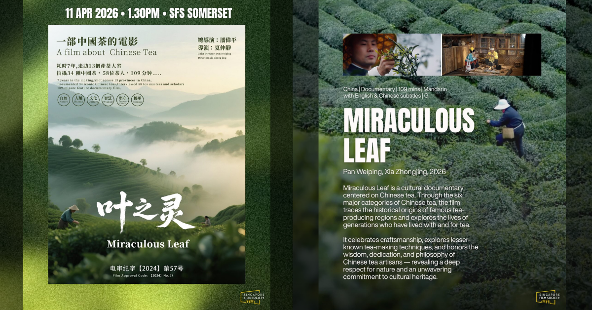 SFS also welcomes local tea enthusiasts and organizations to make bulk ticket bookings for Miraculous Leaf. Director Rachel Xia is available to attend private events for post screening Q&A sessions and dialogues, where she will share insights into her journey in making the film.