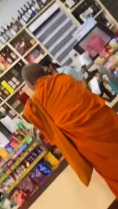 The store staff seemed hesitant and told him, “Can you get your driver or anyone else to purchase this for you?” The monk replied he was in a hurry, but the staff refused to sell, citing the risk of legal trouble for selling alcohol to a monk. Eventually, the monk left the bottles and walked out. According to one source, the Facebook page อยากดังเดี๋ยวจัดให้ รีเทริน์ part 7 captured the incident.