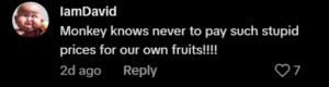 People who watched the video found the moment funny and surprising. Seeing a monkey carry out a quick “raid” in daylight felt like a scene from a movie. The event happened around mid-November, during peak durian season, when the fruit is widely available.