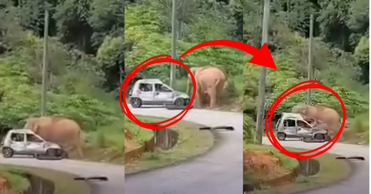 24 March 2026: A tense moment captured on video shows a grass cutter witnessing an angry elephant damaging a car parked by the roadside in Terengganu. The elephant reportedly became aggressive after its calf fell into a roadside drain and could not get out. Thankfully, the car owner was not inside the vehicle and no injuries were reported. In situations like this, keeping a safe distance is the safest option. @thesundaily #theSun #theSunMY #Terengganu #WildlifeEncounter #ViralVideo