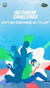 Those who participate in the No Phone Challenge — literally keeping phones off the table during the meal — get 15% off their bill.