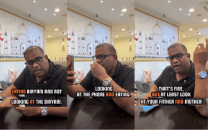 That’s fine — but at least look at your father and mother who’s sitting in front of you. Leave the phone for a minute.”