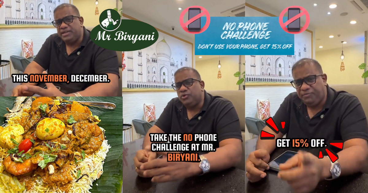 @mrbiryanisg 📵 No Phone Challenge: Nov 1 – Dec 31 🍛 Put the phone down. Look up. Talk. Laugh. Share. For two months, it’s all about real conversations, good company, and the best biryani in town 😋 No scrolling. No Busy Body. Just people, stories, and that perfect plate of biryani. Join us — let’s make connection taste better ❤️ #NoPhoneChallenge #RealTalksOnly #BiryaniAndChill #EatTogether #FoodWithHeart #DigitalDetox #MrBiryani