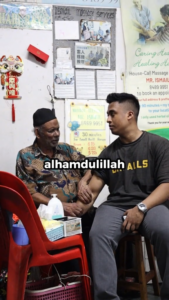In the video, Imran chats casually with Mr Ismail while waiting for his massage. When asked how business has been, Mr Ismail is honest.