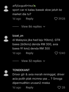 The driver of the Nissan GT-R suffered serious head injuries as a result of the collision and died on the spot. Meanwhile, the 30-year-old driver of a Perodua Axia was taken to Sultan Ismail Hospital with serious injuries but died there.