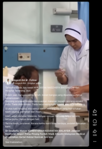 The praised nurse’s name is Nur Deena Nadzhiefa Binti Musni. She is a nurse working at the Seberang Jaya Hospital. According to her colleagues, she is always caring for her patients. This video is a reflection of her daily sense of responsibility.