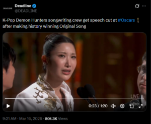 It was the first time a K-pop song was awarded the Best Original Song. The Golden song of KPop Demon Hunters became history. The first South Koreans to win this category were singers EJAE, Ido and producer Teddy Park. It was a personal and touchy moment on stage.