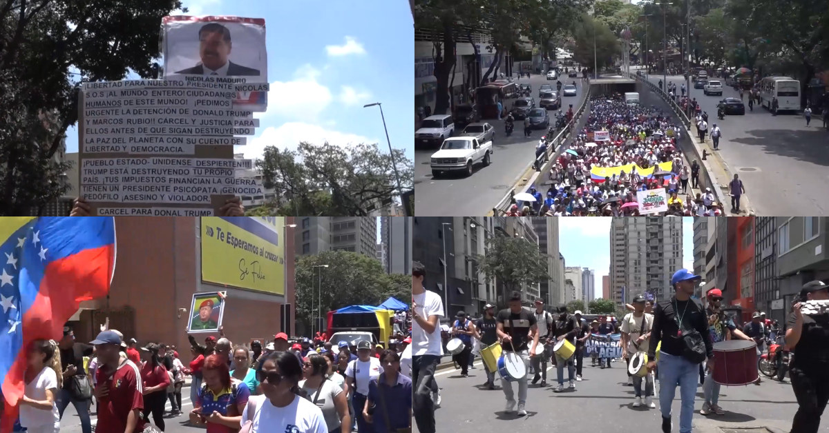 Footage shows Cabello greeting marchers in a festive atmosphere, as crowds marched through the streets waving Venezuelan flags and holding signs in support of captured president Nicolas Maduro.