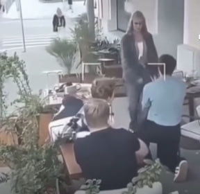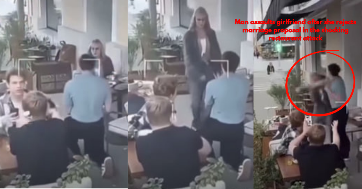 But the romantic mood changed very quickly when the woman gave her answer. She quietly declined the marriage proposal and tried to pull her hand away. According to a video, the man immediately lost his temper when he heard the word “no.” He did not accept her choice with respect or calm. But things changed very quickly. The man got on his feet and looked quite angry. Suddenly the atmosphere of cheerfulness gave way to the sensation of fear, and the onlookers were amazed. It was a very unexpected reaction that shocked every person sitting in the busy restaurant that day.