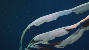 Researchers from the Monterey Bay Aquarium Research Institute previously observed a fish swimming close to a giant phantom jellyfish. The fish appeared to use the jellyfish’s long arms for protection in the deep “Midnight Zone.” Moments like these remind scientists how much of the deep sea remains unseen and unexplored.